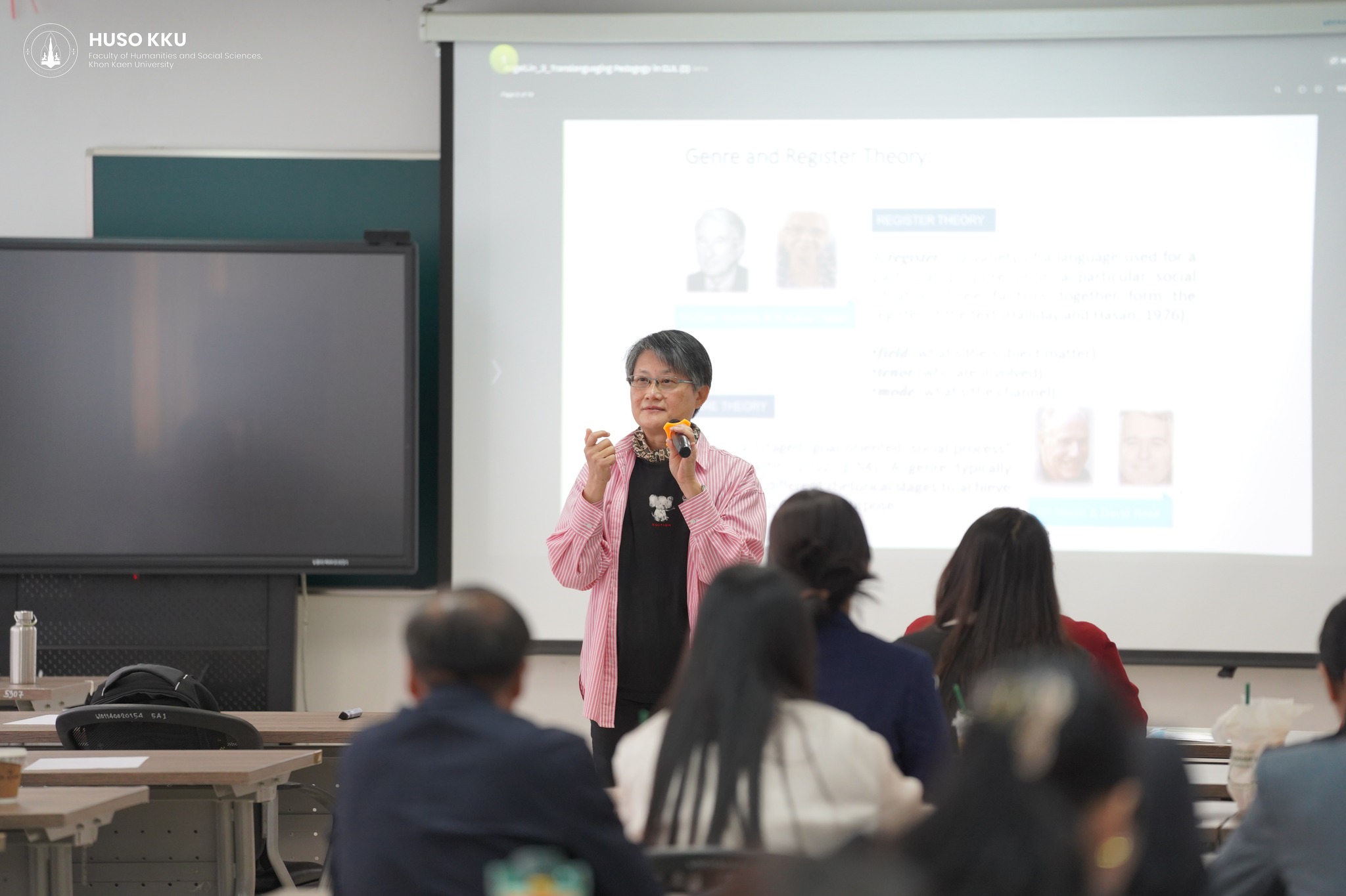The lecture was officially opened by Assistant Professor Dr Piyaporn Punkasirikul, Assistant Dean for Education and Digital Technology, with a report delivered by Dr Banchakarn Sameephet. The event aimed to enhance professional capacity and advance knowledge in English language teaching and applied linguistics research in response to ongoing global changes in education.