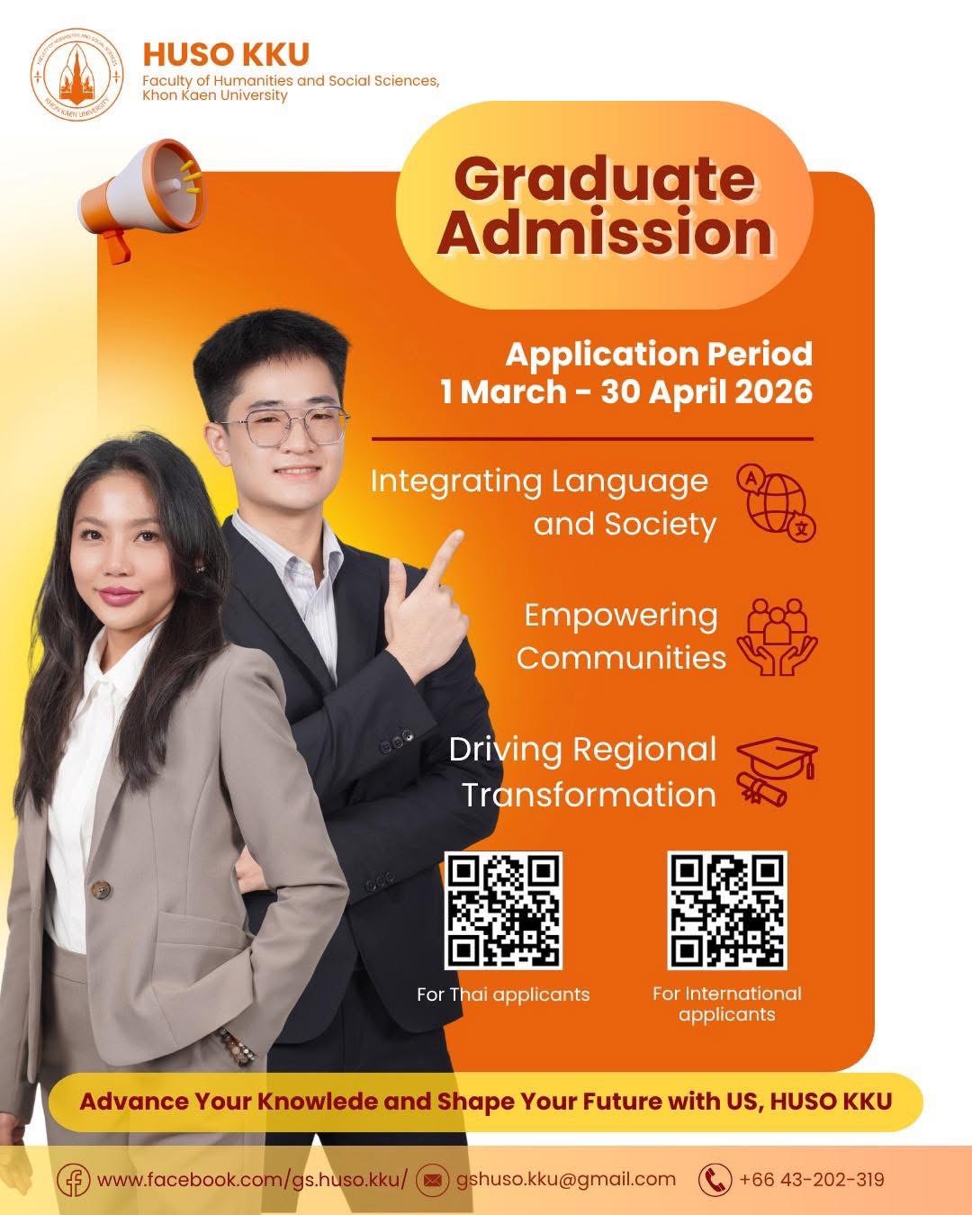 Graduate Admission ข่าวโดย ลงวันที่ 10 เม.ย. 2569 ลงใน Events TH | 4 ครั้ง Application period 1 March - 30 April 2026 แชร์ Facebook Twitter LINE