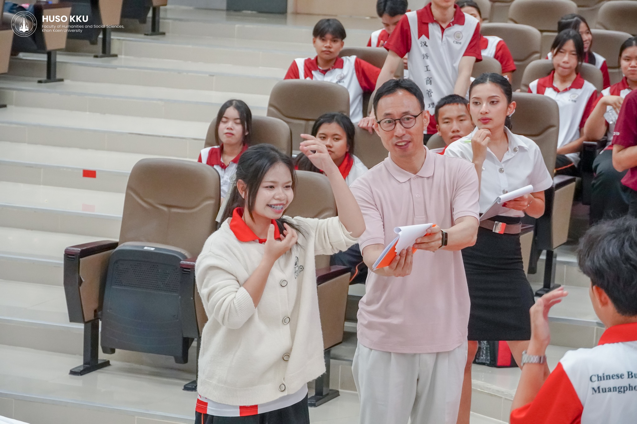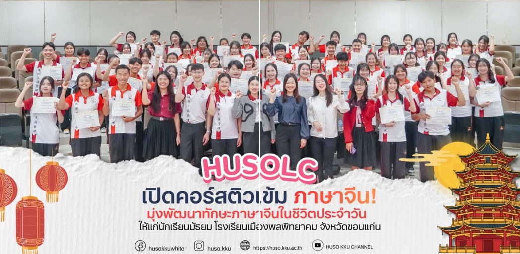 เมื่อวันที่ 4 กุมภาพันธ์ 2569 เวลา 08:30 น. คณะมนุษยศาสตร์และสังคมศาสตร์ มหาวิทยาลัยขอนแก่น จัดโครงการ “อบรมเชิงปฏิบัติการพัฒนาทักษะทางภาษาจีน” ซึ่งได้รับเกียรติจาก ผู้ช่วยศาสตราจารย์ ดร.เบญญาทิพย์ ศุภะกะลิน ผู้อำนวยการศูนย์ภาษา คณะมนุษยศาสตร์และสังคมศาสตร์ มหาวิทยาลัยขอนแก่น เป็นประธานกล่าวเปิดงาน โดยมีคณะครูและนักเรียนจากโรงเรียนเมืองพลพิทยาคม จังหวัดขอนแก่น เข้าร่วมกิจกรรม กว่า 60 คน ณ ห้องประชุม 3218 อาคาร Learning Center คณะมนุษยศาสตร์และสังคมศาสตร์ มหาวิทยาลัยขอนแก่น