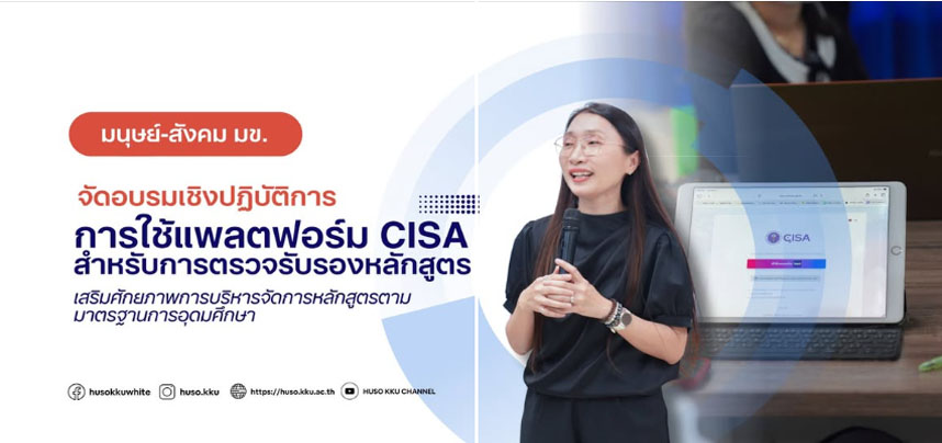 เมื่อวันที่ 5 มีนาคม 2569 เวลา 13.00–16.00 น. คณะมนุษยศาสตร์และสังคมศาสตร์ มหาวิทยาลัยขอนแก่น จัดการอบรมเชิงปฏิบัติการ เรื่อง “การใช้แพลตฟอร์ม CISA สำหรับการตรวจรับรองหลักสูตร” ณ ห้อง 5307 อาคาร HS.05 คณะมนุษยศาสตร์และสังคมศาสตร์ มหาวิทยาลัยขอนแก่น โดยมี อาจารย์ ดร.กันตพงศ์ จิตต์กล้า รองคณบดีฝ่ายการศึกษาและดิจิทัล เป็นประธานกล่าวเปิดการอบรม พร้อมด้วยคณาจารย์และบุคลากรที่เกี่ยวข้องเข้าร่วมการอบรม เพื่อเสริมสร้างความรู้และทักษะในการใช้งานระบบสารสนเทศหลักสูตรเพื่อการรับรองมาตรฐานการอุดมศึกษา (MHESI-CISA)
