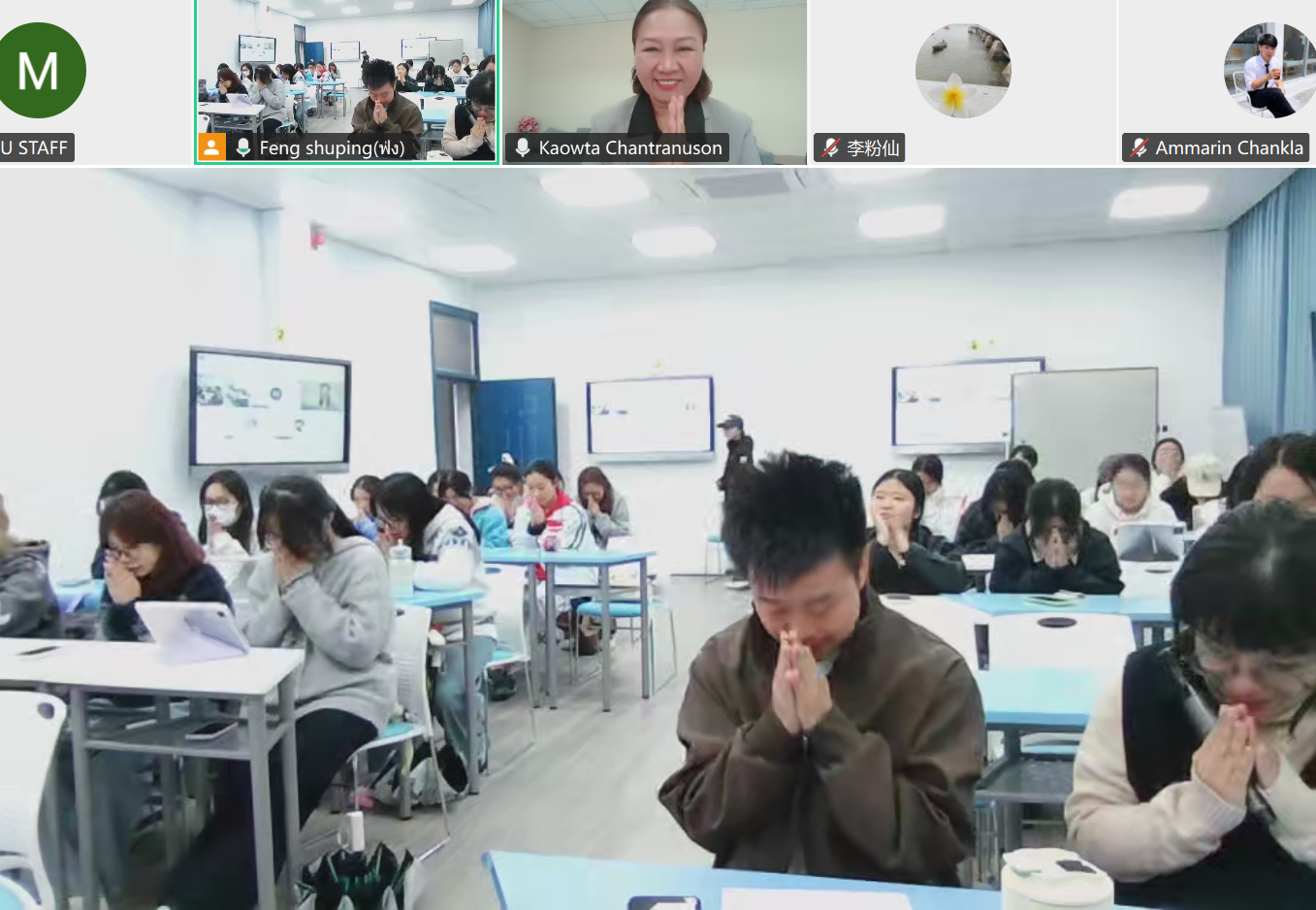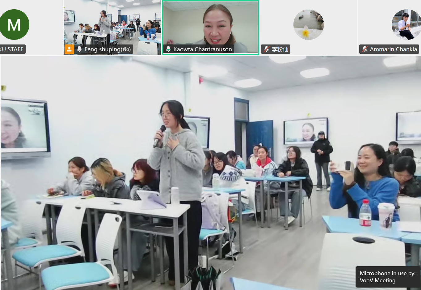 The lecture, titled “Thai Culture Hidden in Language,” was organized by the Thai Language Program at Zhejiang Yuexiu University of Foreign Languages (ZYUFL) in the People's Republic of China. The event saw the participation of Mr. Shuping Feng, Head of the Thai Language Program, along with Miss Kullayanee Chen, faculty member, and students.
