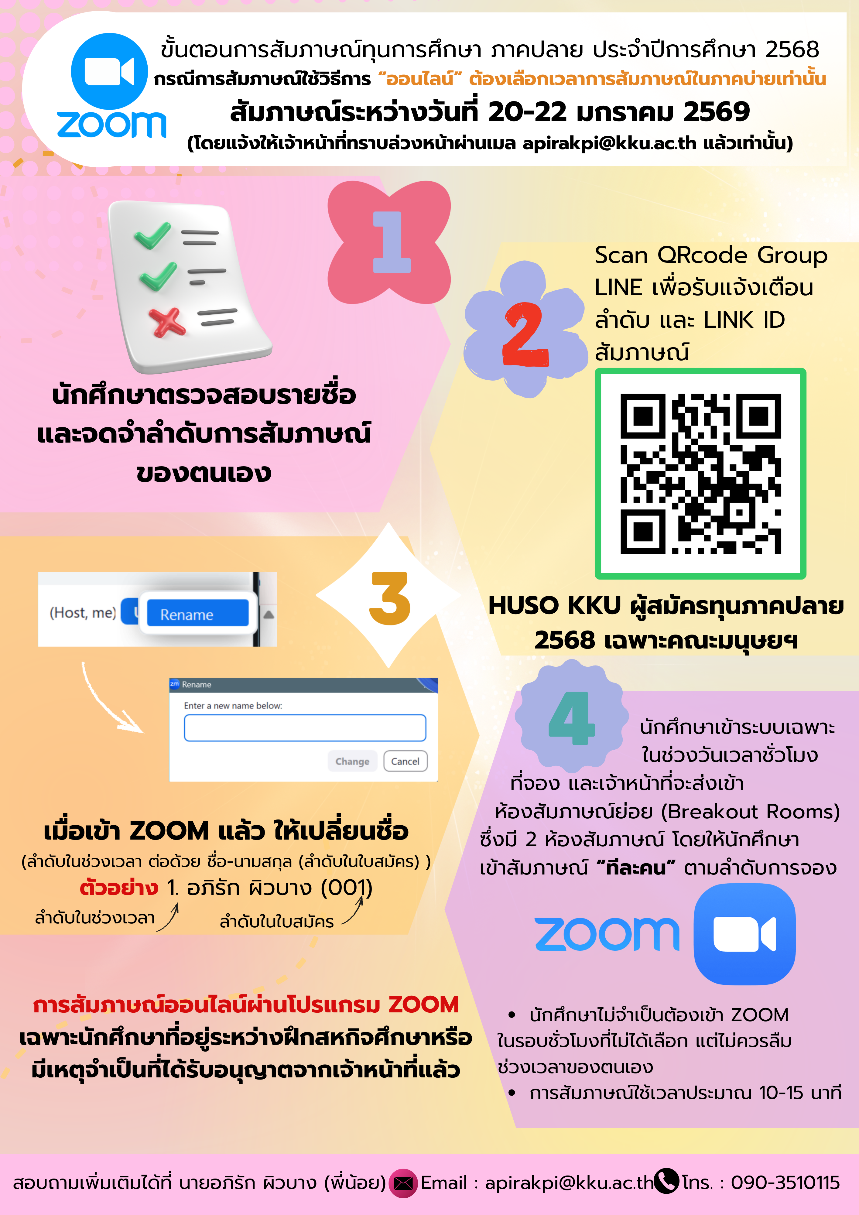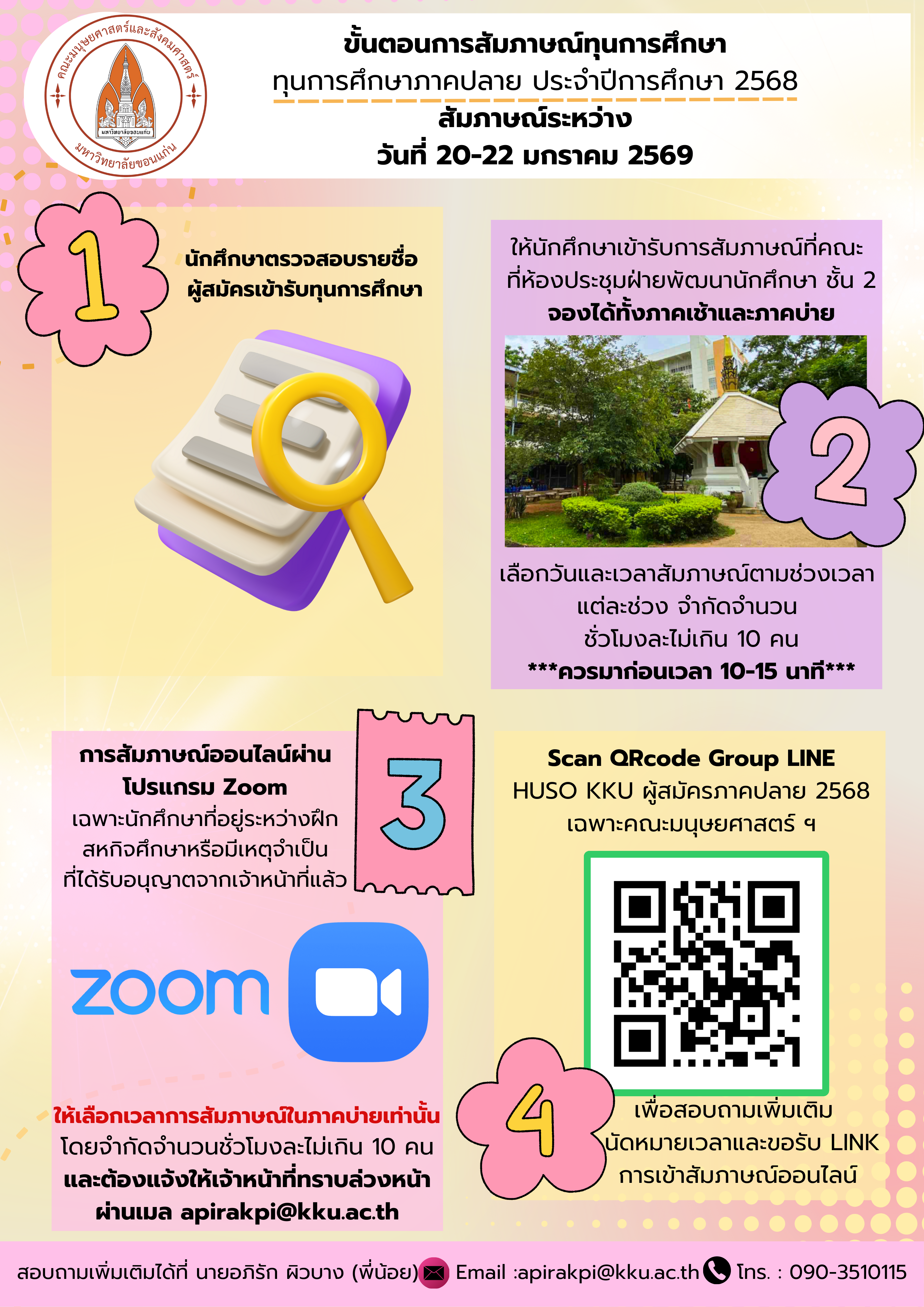 ตารางสัมภาษณ์ทุนการศึกษา ภาคปลาย ปีการศึกษา 2568